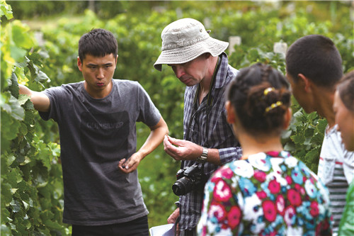 静悄悄开放的花穗,渐渐地变成黄豆粒大小的浆果,这是自然的恩赐,但是需要在实践中掌握制衡调和原理并懂得尊重自然才会有好的收成。小满,物至于此,小得盈满,但小满还不是成熟。小满小满,将满未满,还有危险。这时候黄豆粒大的葡萄浆果最容易染病,管护得当,才能喜获丰收。首先为了调整树的长势,控制产量,让葡萄在成熟阶段能积累更多的风味物质和糖分,所以每亩产量必须控制在500公斤左右。高原上拥有得天独厚的气候,阳光充足,降雨少,香格里拉葡萄园严格按照有机种植标准,只需要喷洒像硫磺或氢氧化铜等有机农药,并及时摘除夏芽抽出的新枝,就能让浆果度过危险期。