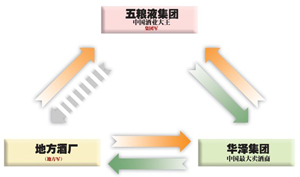 2008年4月25日,我们赶到北京,下了飞机直奔华泽集团会议室。面对《新食品》社长汪歌先生,沉默多年的吴向东先生终于道出了实情。“未来的商业竞争不再是一个企业与另一个企业的竞争,而是一条价值链与另一条价值链的竞争。我们现在建立的是一个由五粮液集团(中国酒业大王)、华泽和地方强势酒厂构成的新的酒业价值链(如图所示)。”专家说,三流的企业执著于产品创新,二流的企业打造品牌,一流的企业创建价值链。