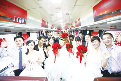 11月10日上午,50对新人乘坐“韶山一号”参加集体婚礼。